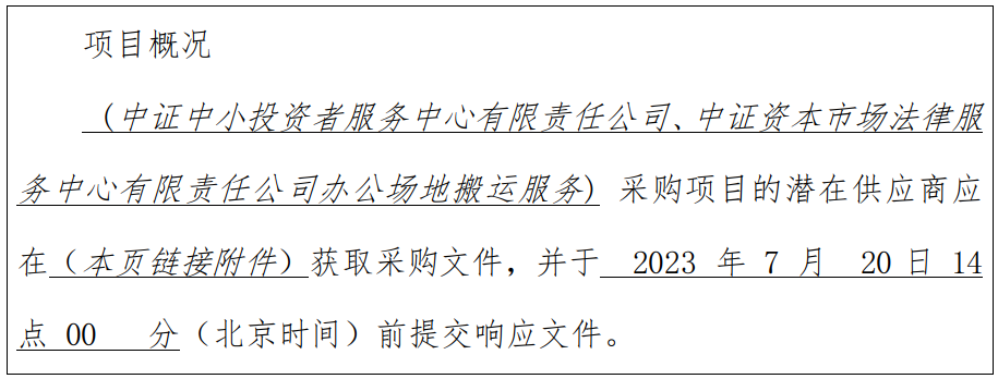 中证中小投资者服务中心有限责任公司、中证资本市场法律服务中心有限责任公司办公场地搬运服务采购项目磋商公告补充说明