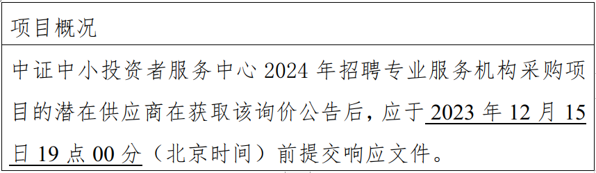 投资者服务中心2024年招聘专业服务机构采购项目征集公告